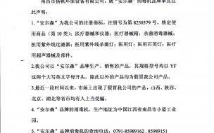 致廣大消費者: 南昌市揚帆環(huán)保設備有限公司,就“安爾森”消毒機品牌事宜在此聲明